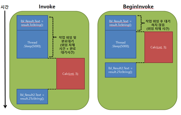 [그림 4] Invoke와 BeginInvoke 의 진행 흐름도