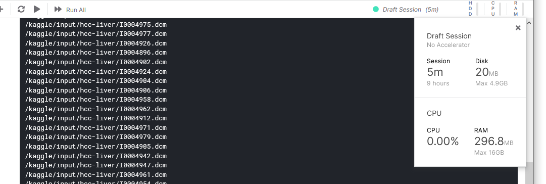 - Draft Session 은 현재 notebook에 할당된 Disk, Memory, Ram 용량을 확인할 수 있음.