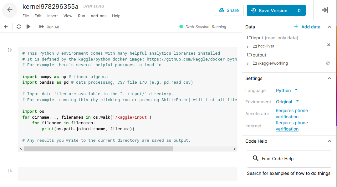 - 처음 Notebook 생성시 데이터셋 경로는 자동으로 생성이 된다.