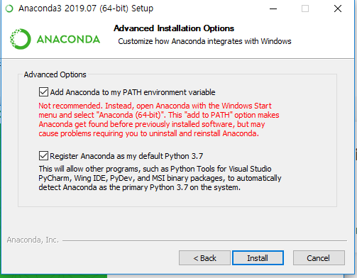 add anaconda to my PATH environment variable를 선택해줍니다.