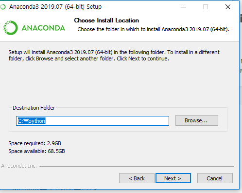 본인의 경우 SSD가 1TB라서 용량이 넉넉하여 C Drive에 설치했지만 설치경로는 본인의 임의에 따라 설치해도 아무 이상이 없다. 또한, 본인의 경우 Python 대신 anaconda를 설치했기때문에 폴더 이름을 " Pytho"으로 지정하였다.