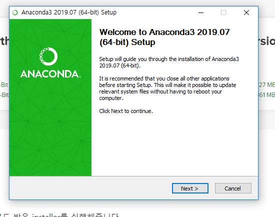 다운이 완료되면, 다운로드 받은 installer를 실행해줍니다.